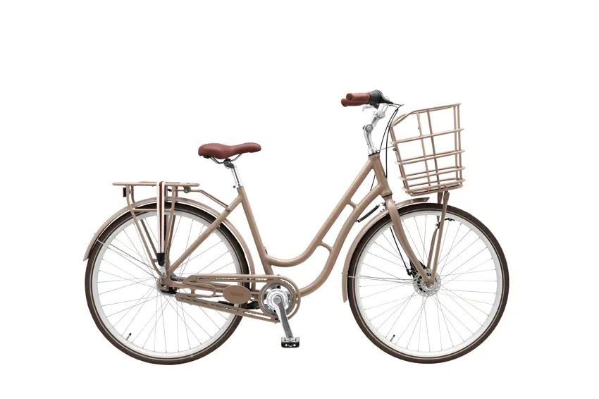 Fine detaljer som designskærm, bagagestropper og farvet kurv fuldender cyklens look og gør samtidig turen mere bekvem.